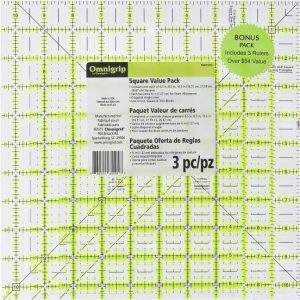 Dritz 6.5in 8.5in 10.5in Omnigrip Square Ruler Combo Pack, 6″” by 6″” Stitched in Yarn, Clear, RN65105S