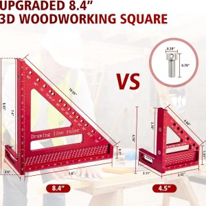 Multi Angle Aluminum Ruler Plus Upgraded 8-2/5”, 0-90° Carpenter Square with Storage Bag and Carpenter Pencil, Speed Square for Carpenters, Construction, Craftsmen and DIY.