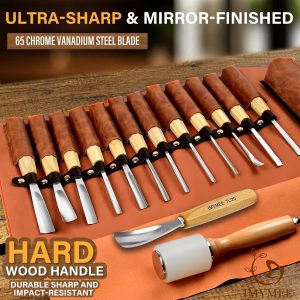 Wood Carving Tools Set of 12 Chisels With PU Storage Bag,Wood Carving Chisels,Sharp Cr-V 65 Steel Blades,Wood Chisels for Woodworking,Wood Whittling Kit for Beginners,Wood Carving Kit